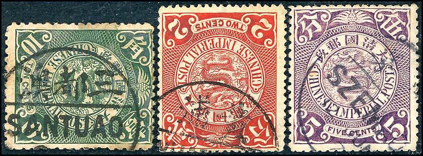 常2海關二次雲龍郵票 (小龍票)3枚舊票,VF-F